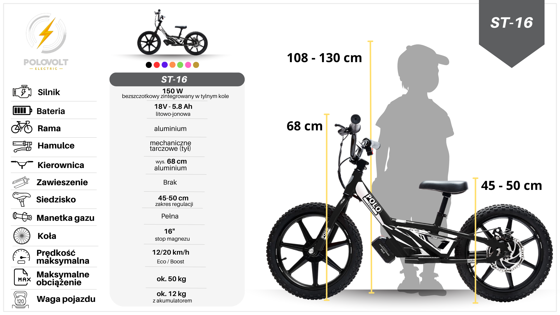 Doskonały dla małych rowerzystów, którzy opanowali już jazdę na rowerku biegowym lub mają doświadczenie w jeździe na POLOVOLT ST-12.